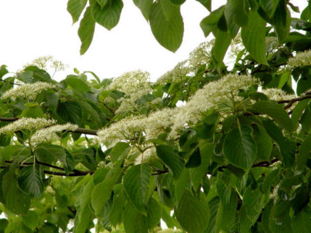 Deze Cornus is eigenlijke een verbeterde versie van de Cornus controversa. Ook Cornus controversa 'Pagoda' heeft de etage groeiwijze en kan op den duur de zelfde hoogte bereiken. Het verschil zit hem vooral in het blad wat meer glimmend is dan bij de gewone soort. Ook het blad is iets groter als bij Cornus controversa en het kleurt gelijk na het uitlopen al donker groen waardoor de schermen met crèmewitte bloemen nog mooier uitkomen. De jonge scheuten kleuren, in de herfst en winter, donkerder rood als bij de soort. De karakteristieke groeivorm komt het mooiste tot zijn recht wanneer deze Cornus als solitair geplant wordt. Een leuk idee is om onder de boom een schijnwerper die omhoog schijnt te plaatsen,hiermee krijgt u door de etage groeiwijze een speciaal effect. De Cornus controversa 'Pagoda' groeit goed in de volle zon en in de halfschaduw. Ook deze cultivar van Cornus controversa wordt geënt en het kan voorkomen dat de onderstam scheuten van onder de entplaats begint te vormen. Deze dient u in een zo jong mogelijke stadium te verwijderen. U kunt ze het beste zo dicht mogelijk tegen de stam aan weg knippen. Uiteraard met een scherpe snoeischaar. Snoeien verdraagt deze Cornus goed. Wel wordt aangeraden de karakteristieke etage groeivorm te behouden. De Cornus controversa 'Pagoda' is goed winterhard.