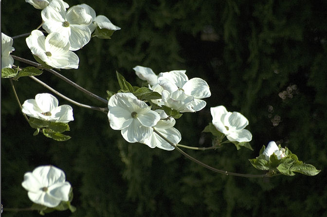Cornus 'Ormonde' is a crossbreed between Cornus florida and Cornus nuttalli. Its leaves are egg shaped, shiny dark green and of a leather-like texture. In autumn, its leaves turn beautiful shades of deep red and purple and slightly curl. 'Ormonde's' flowers are similar to Cornus nuttalli and have bright white bracts which develop a light pink glow before they shed. Cornus 'Ormonde' has a more compact growth habit than all other nuttalli/florida crossbreeds and therefore remains smaller. Cornus 'Ormonde' grows under the same conditions as its parents and is winterproof.